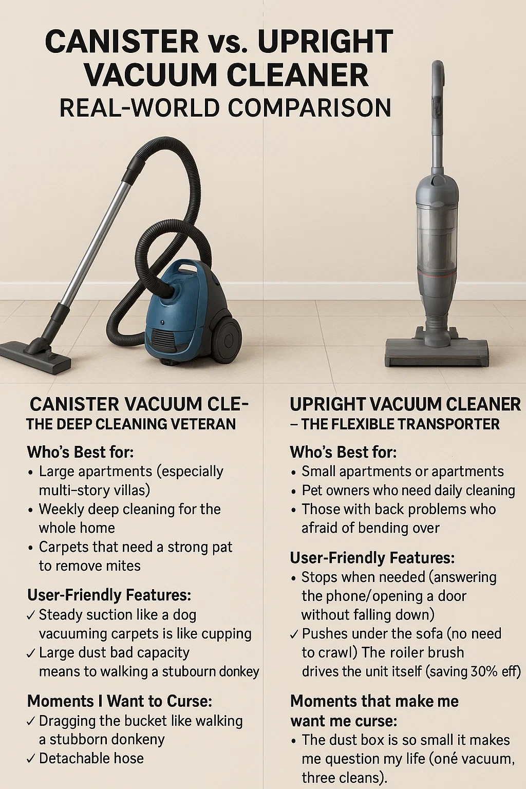 Canister vs. oppreist Støvsuger Sammenligning i den virkelige verden